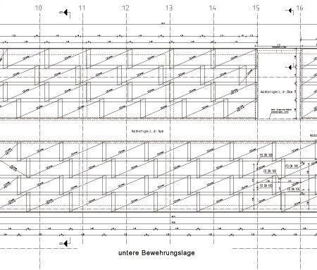 Die Sporthalle mit 2.400 m² Nutzfläche aus einer Stahlkonstruktion, verblendet mit Trapezblechen und teilweise Mauerwerk, ist zur gleichen Zeit erbaut worden. Für diese Maßnahmen erarbeiteten wir die Ausführungsplanung und die Bewehrungspläne für den Generalunternehmer.